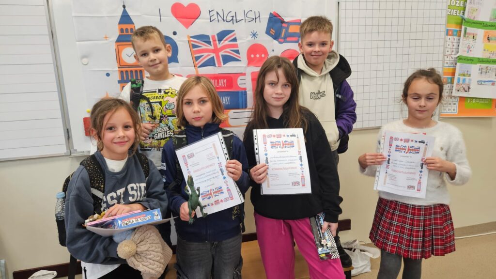 W czwartek 23 października br. odbył się konkurs literowania w języku angielskim. Udział wzięli chętni uczniowie klas trzecich naszej szkoły. Konkurs polegał na literowaniu różnych wyrazów w języku angielskim oraz odgadywaniu wyrazów literowanych przez p. Dorotę Borszewską, nauczycielkę języka angielskiego. Miejsce I zajęła Magda z kl. III e, miejsce II – Olek z kl. III d, a miejsce III – Maks K. z kl. III a. Wszyscy uczestnicy otrzymali upominki i dyplomy. Gratulujemy wszystkim dzieciom, które wytrwale ćwiczyły literowanie i wzięły udział w konkursie!