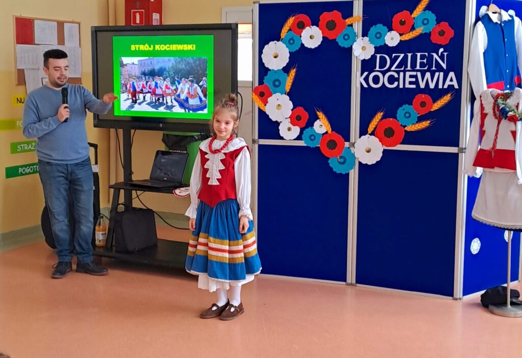 Szczególnym wydarzeniem była wizyta pana Oskara Kamińskiego z Muzeum Ziemi Kociewskiej, który przeprowadził niezwykle ciekawe warsztaty dla uczniów klas II i III. Dzieci miały okazję poszerzyć swoją wiedzę na temat Kociewia, poznać charakterystyczne elementy haftu kociewskiego oraz dowiedzieć się więcej o regionalnym dziedzictwie. Podczas spotkania uczniowie mogli także z bliska obejrzeć i poznać elementy stroju ludowego.